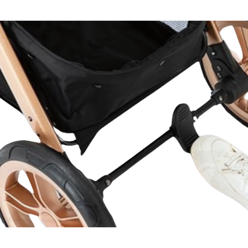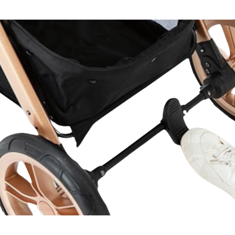 Überwachung und Sicherheit in Reichweite Ihres Fußes. Das Bremssystem des Wagens ermöglicht Ihnen die Kontrolle mit einfacher Bedienung und reaktionsschnellem Design. Egal, ob Sie einen entspannten Spaziergang machen oder plötzlich anhalten müssen, unser Bremssystem sorgt für Stabilität und ein ruhiges Gewissen.