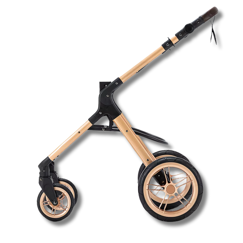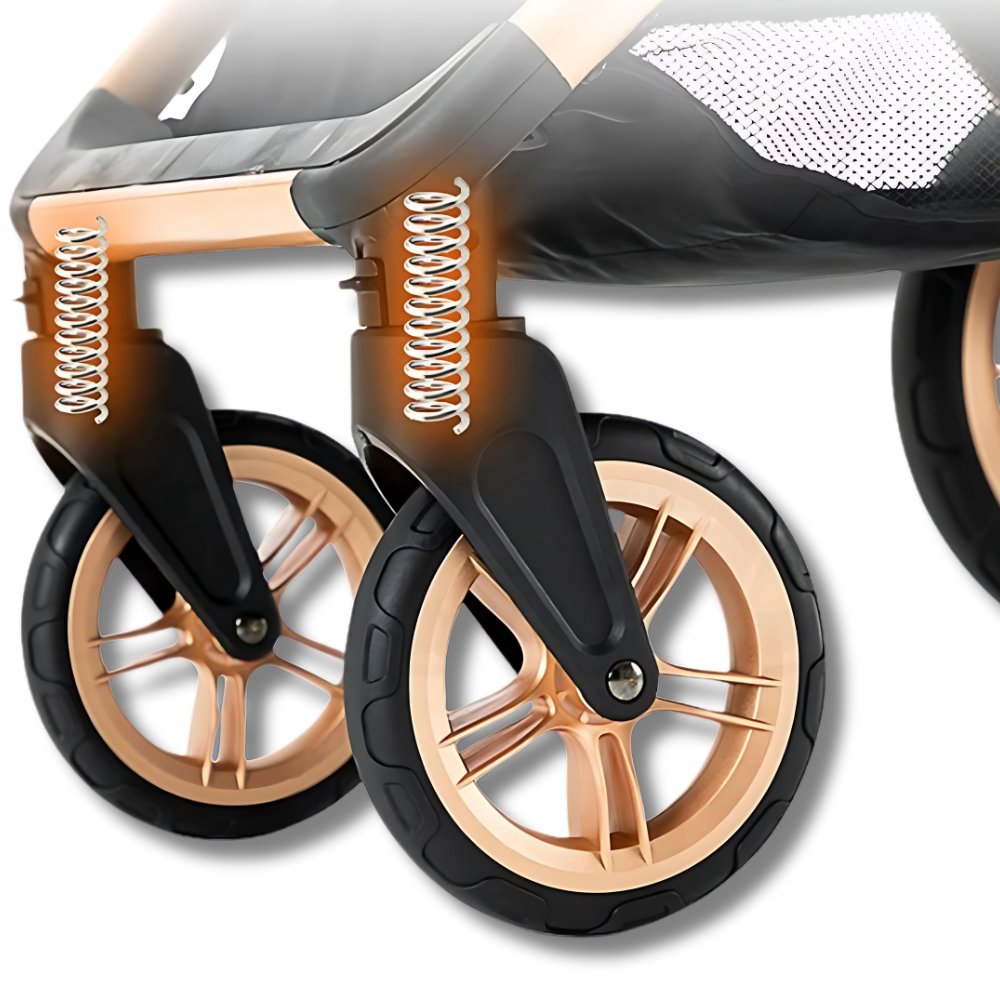 Erleben Sie die sanfteste Fahrt für Ihr Kleinkind mit dem Federungssystem. Unser Kinderwagen gleitet mühelos über jedes Gelände und bietet unvergleichlichen Komfort. Von unebenen Gehwegen bis hin zu abenteuerlichen Pfaden kann Ihr Kind eine sanfte und gepolsterte Reise genießen.