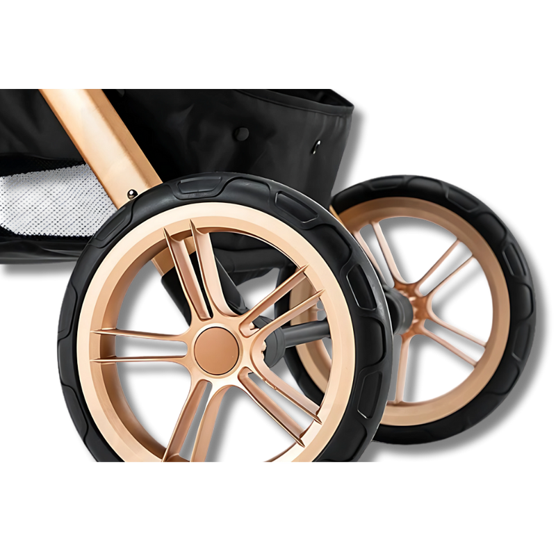 Erobern Sie jedes Gelände mit Zuversicht dank der 29 cm gummierten Hinterräder für Geländefahrten am Kinderwagen. Für Abenteuer konzipiert, bieten diese robusten Räder Stabilität und Grip, was eine reibungslose Fahrt auf verschiedenen Oberflächen ermöglicht. Egal, ob Sie durch die Straßen der Stadt spazieren oder Wege abseits der ausgetretenen Pfade erkunden.