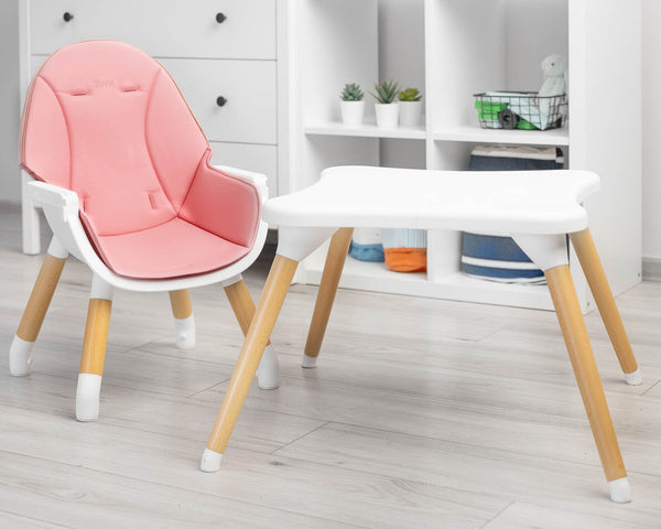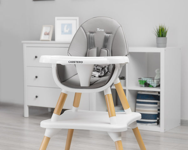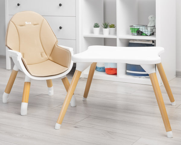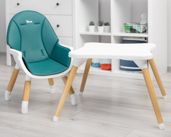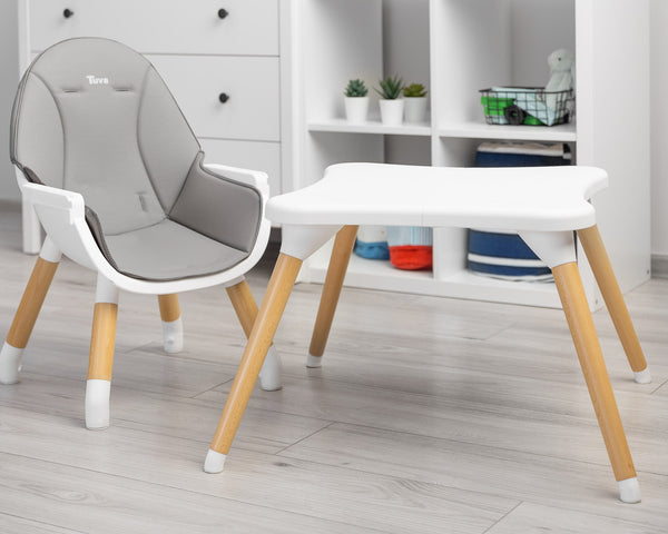 Tuva ist ein hoher Stuhl, der elegantes skandinavisches Design mit erstklassiger Funktionalität vereint. Er ist für Eltern gedacht, die ihren Kindern Komfort, Sicherheit und Anpassungsfähigkeit in einem Produkt bieten möchten. Mit der einfachen Umwandlung in ein Set aus Stuhl und Tisch sowie hochwertigen Materialien ist Tuva eine ausgezeichnete Wahl für jedes Zuhause.