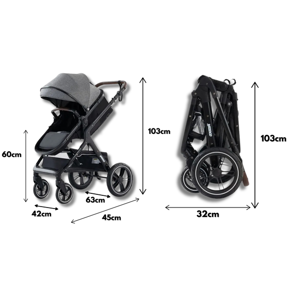 Mit einfachem Zusammenklappen und Tragen ist er ideal für Eltern, die immer in Bewegung sind. Das elegante Design und die leichte Konstruktion erleichtern das Bewegen.