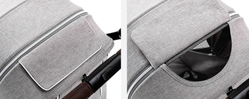 Mit dem eingebauten Fenster können Sie Ihr Kind während der Fahrt einfach überwachen. Brauchen Sie frische Luft? Öffnen Sie einfach das Fenster. Oder möchten Sie Ihr Kleines vor Sonne oder Wind schützen? Schließen Sie es einfach. Seine flexible Natur ermöglicht es, sich an verschiedene Wetterbedingungen und die Wünsche Ihres Kindes anzupassen.