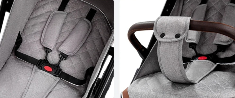 Es vereint höchsten Komfort mit allen notwendigen Sicherheitszertifikaten. Sein Sicherheitsdesign umfasst eine robuste Struktur und Sicherheitsgurte, die Stabilität und Schutz während der Fahrt gewährleisten. Die Gurte sind verstellbar und sorgen dafür, dass Ihr Kind sicher im Kinderwagen angeschnallt ist, unabhängig vom Gelände oder der Geschwindigkeit. So können Sie unbesorgt spazieren gehen, während Ihr Kleines Komfort und Sicherheit genießt.