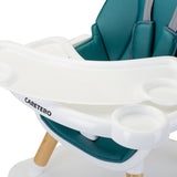 Tuva ist aus hochwertigen Materialien gefertigt, was ihn langlebig und sicher macht. Er verfügt über einen Fünfpunktgurt und zusätzlichen Schutz am Tablett, der ein Abrutschen des Kindes verhindert. Im Hinblick auf den Komfort von Kind und Eltern hat der Stuhl ein doppeltes, verstellbares Tablett mit zwei Becherhaltern. Der Sitz ist weich und leicht zu reinigen.